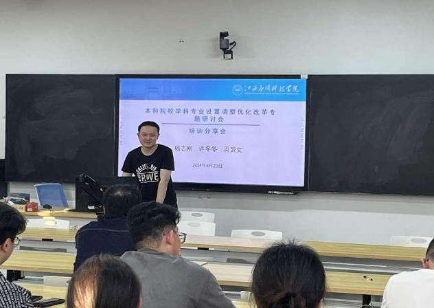 4月23日下午,建筑工程学院开展教师外出培训分享会。本次分享会分享的是2024年4月19日-21日由西安交通大学中国西部高等教育评估中心与中国管理科学研究院共同举办的“本科院校学科专业设置调整优化改革专题研讨会”内容,我院院长杨志刚带领学院教务科长许冬冬和学院青年骨干教师周赟文参加研讨会并作分享。学院副院长余春泉,各专业教研室主任和学院中青年骨干教师等参加分享会。