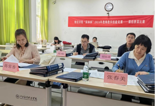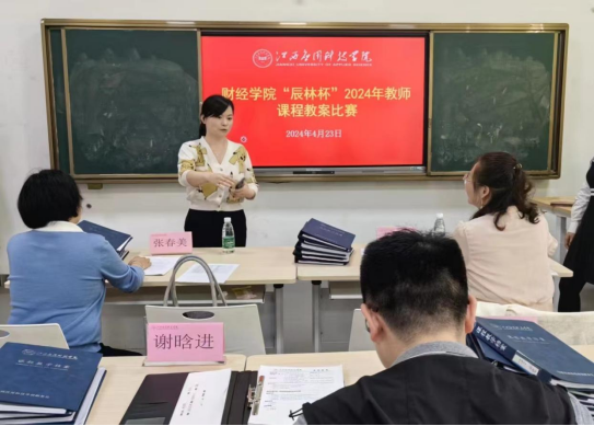 为进一步提高财经学院教师教学水平,全面加强师资队伍建设,财经学院于4月23日下午在行知楼124开展“辰林杯”2024年教师课程教案比赛活动,此次活动邀请江西农业大学张春美教授、江西科技师范大学蒋常香教授、华东交通大学谢晗进教授、易魁教授担任评委。副院长漆圆方,教务科科长李静,财务管理教研室主任黄漂及多名教师积极参与。