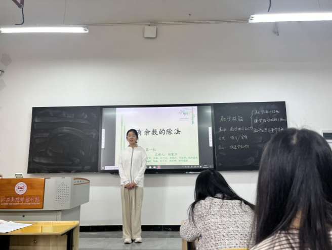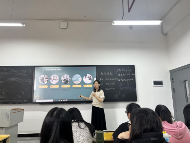 《说课、听课、评课考核》是一门实操性很强的课程。课堂伊始,杨标老师以马卡连柯的名言——“学生可以原谅教师的严厉、刻板,甚至吹毛求疵,但是不能原谅老师的不学无术。”进行课程导入,顺势引导学生思考对于一名教师而言,应具备哪些核心素质。这一教学手段充分调动了学生兴趣,提高了课堂趣味性。在授课过程中,杨老师先为同学们解读了教学技能的基本概念与一般规律,讲解了其基本的训练方法和类别,再让同学们进行课堂展示。杨老师立足于以学生为主体、教师为主导的理念,在课堂中通过先讲解再实操的方式进行内容呈现,让学生融入课堂,做到理论联系实际,建立起知识之间的联系。