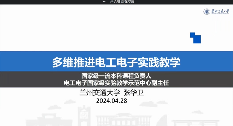 此次会议由兰州交通大学张华卫高级工程师进行报告,从“物、人、法”(平台建设、队伍建设、教改研究)三要素着手,重构出基础知识层、综合设计层、工程应用层和研究创新层-4层次实践教学内容,通过“3维拓展”(时间拓展、内容拓展、空间拓展),打通第一课堂与第二课堂,达到了“3个融合”(两课融合、专创融合、产学研融合),多维推动学生综合实践创新能力提升。