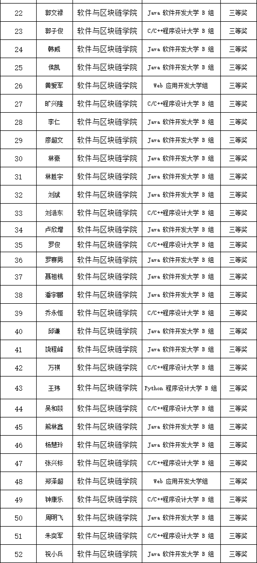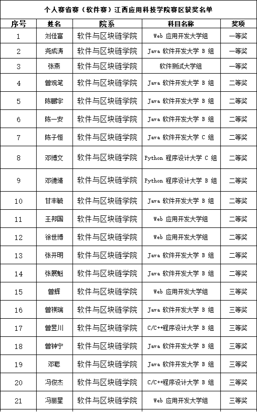 2024年4月29日,第十五届蓝桥杯全国软件和信息技术专业人才大赛(软件类)江西赛区获奖名单公布。我院作为本次比赛72886必赢网站赛点的承办单位,在学院党政领导的带领下,赛事得到了精心组织、顺利开展。经全体指导老师的悉心指导,我院学子在本次比赛中共斩获52项奖项,其中本科组一等奖3项、二等奖9项、三等奖38项;专科组二等奖2项。