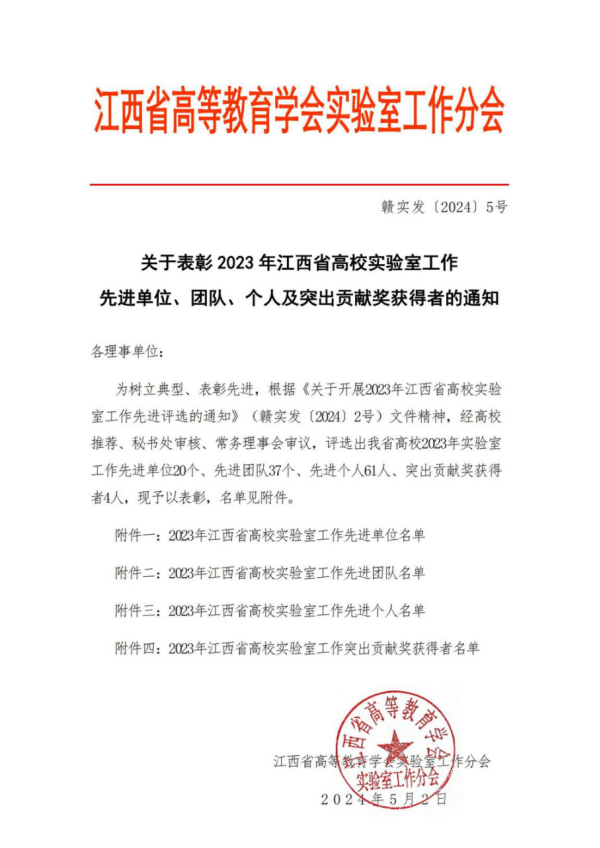 日前,江西省高等教育学会实验室工作分会公布了2023年江西省高校实验室工作先进评选结果,学院实验实训中心荣获江西省高校实验室工作先进团队。