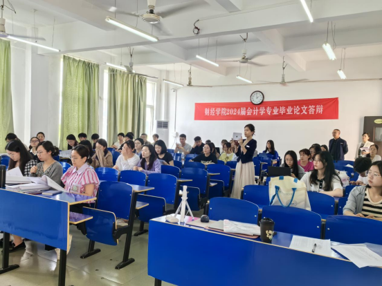 财经学院于5月7日至8日下午在行知楼开展了2024届本科毕业论文答辩工作。院长揭志锋、党总支书记何难绝、副院长漆圆方、企业代表及专任教师出席答辩会。本次毕业论文答辩根据专业类别分为19个小组进行。