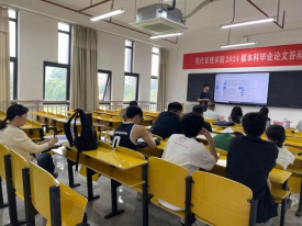 为深入贯彻《教育部关于印发〈本科毕业论文(设计)抽检办法(试行)〉的通知》及学校下发的《关于做好2024届本科生毕业设计(论文)答辩工作的通知(2024年77号)》等文件精神,现代管理学院于5月12日组织开展了2024届本科生毕业论文答辩工作。本次论文涉及物流管理、酒店管理、市场营销和健康服务与管理4个专业共计184名学生参加答辩。
