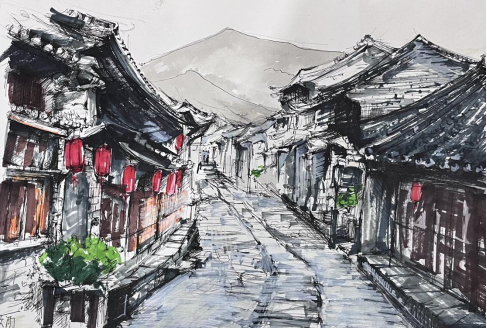 在这短暂的六天里,学生们深入大理的凤阳邑村、廊桥边的有风稻田、龙龕码头以及双廊古镇等多个著名景点进行写生。他们用笔触捕捉着每一处景点的独特韵味,用心灵感受着这片土地所蕴含的文化与历史。