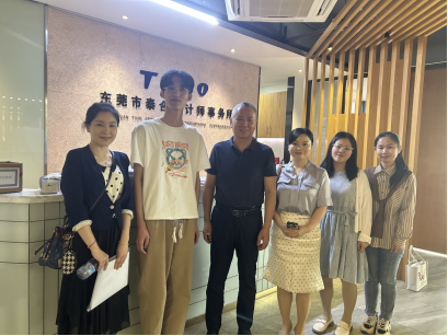 为深入了解2024届实习生的工作实况,同时与企业高层深入对话,共同探讨优化人才培养方案的新思路,2024年5月13-14日,学院副院长漆圆方携三位教研室主任一行赴东莞市泰合会计师事务所、广东鼎维网络科技有限公司看望实习生。