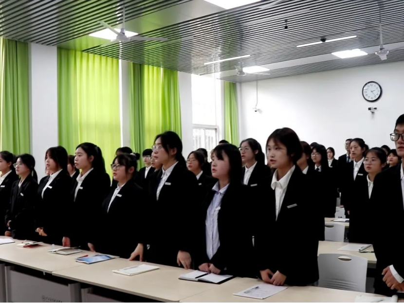 活动伊始,全体起立,奏唱国歌,现场气氛庄严肃穆。紧接着,财经学院党总支书记何难绝为此次开班仪式致辞,强调了入团积极分子培训的重要性,并对财经学院2024年上半年全体入团积极分子提出三点希望。随后,由财经学院聂方付老师宣读培训班班级管理制度。聂方付老师宣读的管理制度中明确了培训期间的纪律要求和学习安排,确保了培训活动的有序进行。在财经学院聂方付老师宣读完毕后,由入团积极分子代表陈宇佳发言。最后,由校团委书记张荆对本次开班做总结讲话,由此对财经学院2024年上半年全体入团积极分子提出了殷切期望。此次开班仪式在洪亮的团歌声中圆满结束。