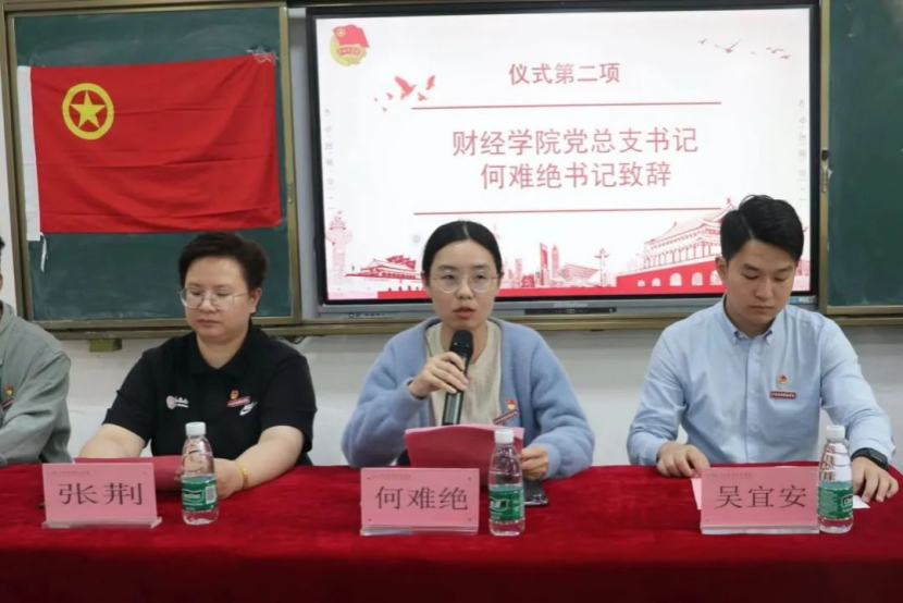 为深入贯彻落实全面从严治团要求,进一步规范学院团员发展工作,正确引导入团积极分子明确入团目的,端正入团动机,提高入团积极分子的政治理论水平,选拔一批优秀学生加入到中国共产主义青年团的队伍中来,财经学院团总支在学院党总支的领导、校团委的指导下,于2024年4月26日中午在行知楼128教室举行2024年上半年入团积极分子培训班开班仪式。参与此次开班仪式的人员有:校团委书记张荆、财经学院党总支书记何难绝、财经学院团总支副书记吴宜安、财经学院专职辅导员聂方付以及2024年上半年入团积极分子。