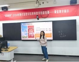 现代管理学院“辰林杯”2024年教师教学技能竞赛——课堂教学展示竞赛取得圆满成功,经过激烈角逐,将推荐11名教师参加校级决赛。此次竞赛不仅为教师们搭建了一个展示自我、互相学习的平台,也让教师们在竞赛中不断学习,共同提高,调动了全体教师的积极性,使教师们在历练中提升课堂教学能力,从而有力地促进学院教师的专业成长。