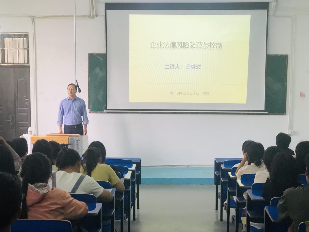 为贯彻落实习近平总书记关于“法治是最好的营商环境”重要论述精神,为提高必赢官网广大学生的法律意识,大力弘扬法治精神,创建和谐校园,5月30日下午,马克思主义学院在三达楼阶梯六举行以“企业法律风险防范与控制”为主题的普法讲座。特别邀请了马克思主义学院陈洪波副教授作为主讲人。
