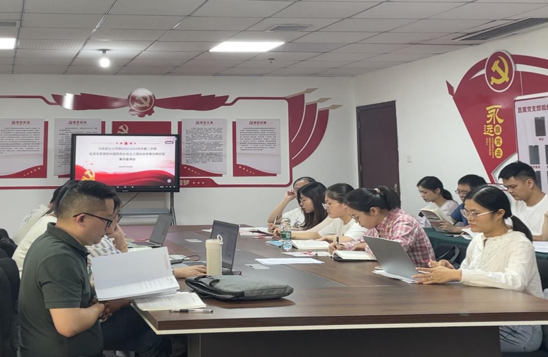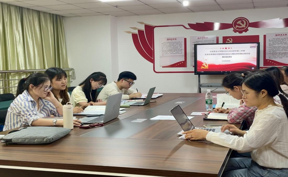 为提高教学水平,提升教学质量,马克思主义学院《毛泽东思想和中国特色社会主义理论体系概论》教研室于2024年5月28日下午14:30在综合楼807会议室召开了集体备课会,会议由教研室主任付云娇主持,教研室全体教师参与。