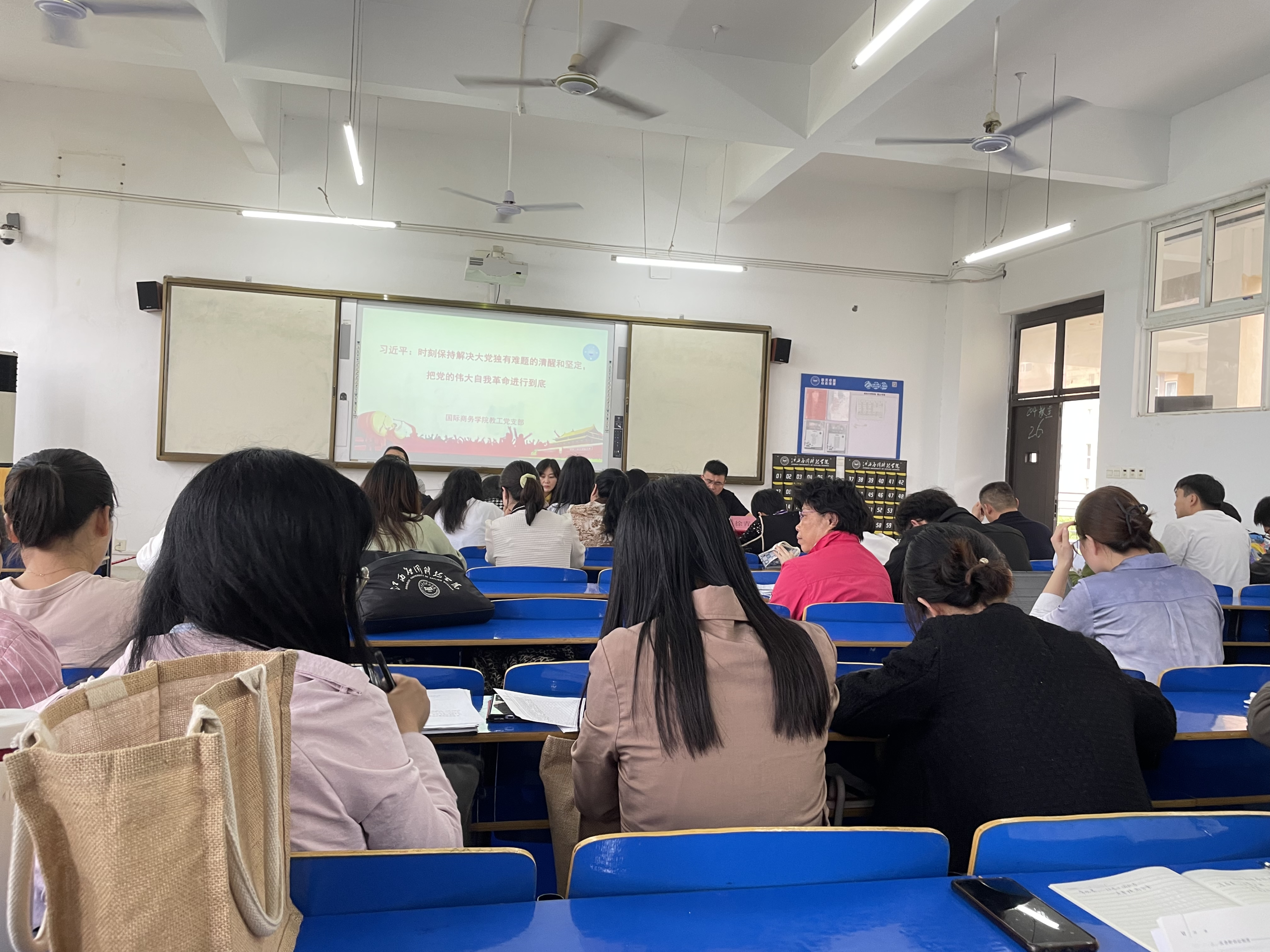 4月16日,国际商务学院党总支在三达楼204召开学习习近平:时刻保持解决大党独有难题的清醒和坚定,把党的伟大自我革命进行到底,全体党员同志参加。会议由党总支书记徐青同志主持,由党总支宣传委员康思思记录。