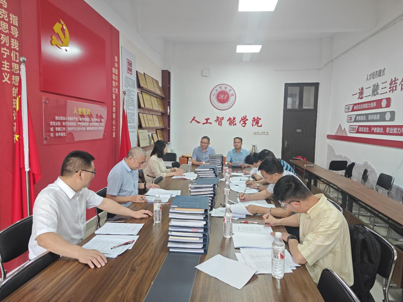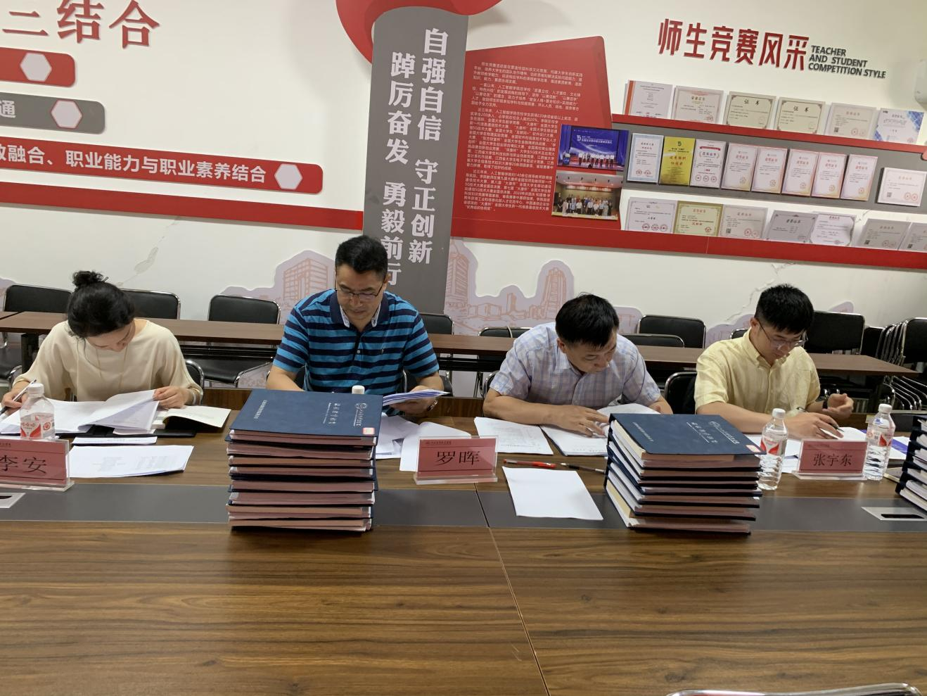 (照片为评委正在进行课程教案评审)