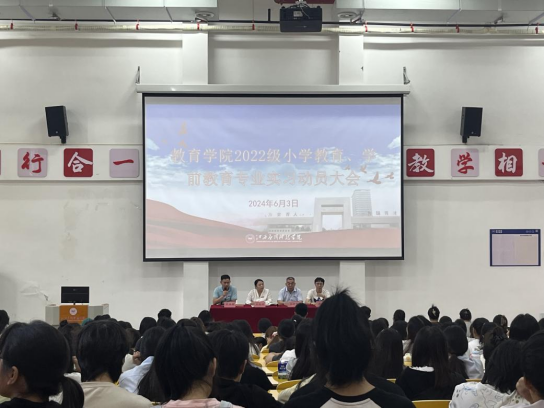 为进一步落实学院2022级小学教育、学前教育专业实习工作,加强2022级对专业实习的认知,提升师范生专业素质和实践能力,引导学生做好实习前的各项准备。6月3日,学院在志远楼101报告厅召开2022级小学教育、学前教育专业实习动员大会。学院副院长刘晓领、学工科长张伟健、教务科科长邹振根、教务科副科长袁野、小学教研室教师刘诚鹏、学前教研室教师贾林静、2022级带班辅导员以及2022级全体学生参加了实习动员大会,动员会由学工科长张伟健主持。