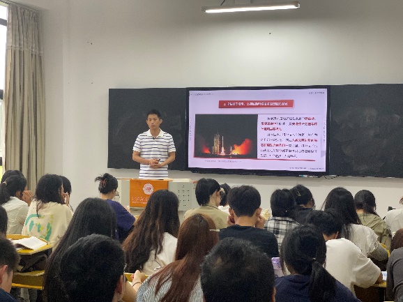 课堂上,两位老师充分发挥自己的专业优势,为学生们带来了精彩纷呈的讲解。何茹老师结合新质生产力等当前热点话题讲述了“三个代表”重要思想的核心内容。蔡令老师围绕发展马克思主义视野中“人”的地位,结合中西的文化传统分析了科学发展观“以人为本”的理论依据与现实依据。授课中,学生们积极提问,与老师们展开了热烈的讨论。