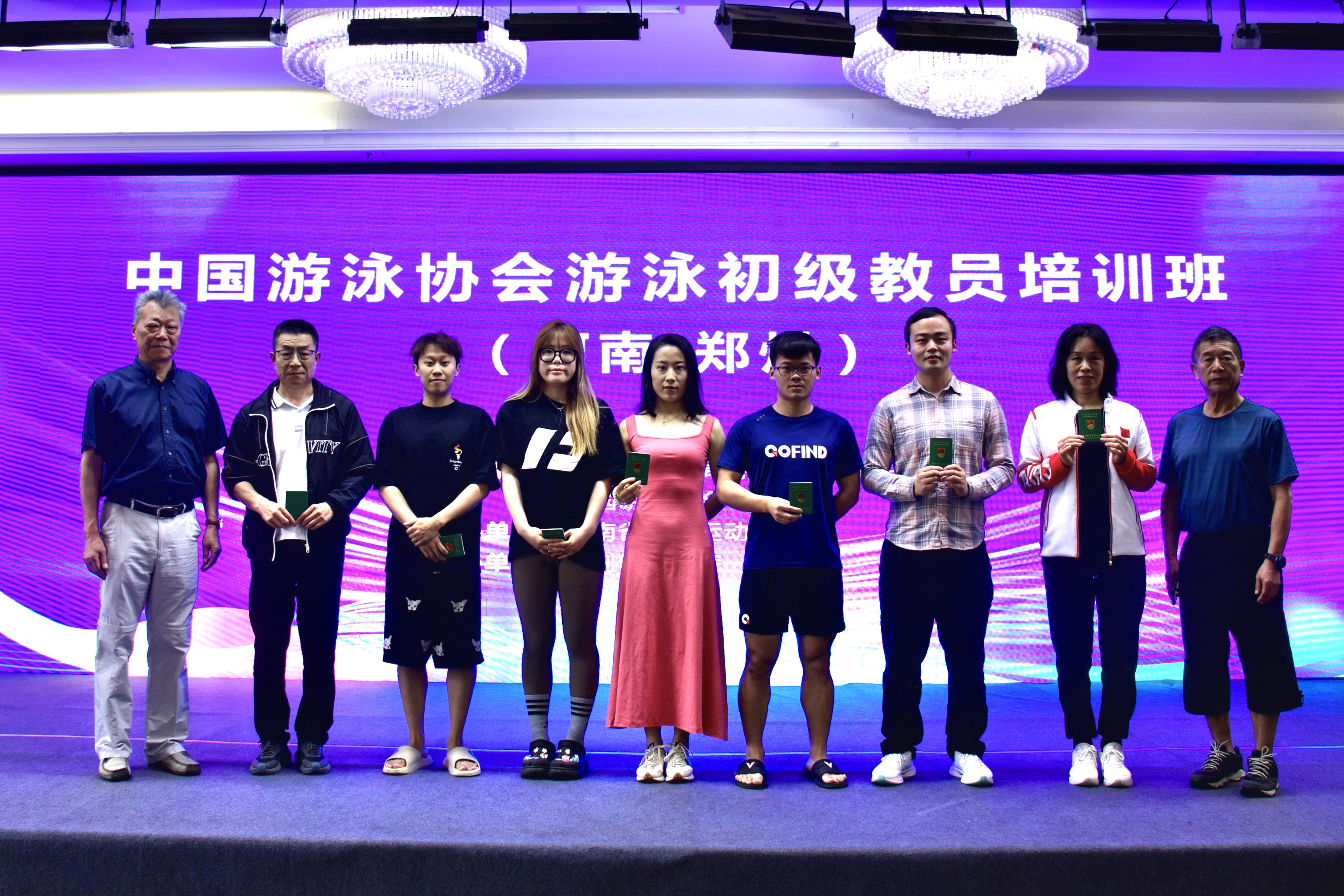 根据体育总局游泳中心《关于游泳(含公开水域游泳)初级教练员岗位培训专项技能考核标准的通知》的文件要求,获得国家体育总局初级教练员证书须先获得中国游泳协会中级游泳教员证书。为此,为做好游泳教育培训工作,进一步提高游泳教练员的业务水平和综合素质,促进青少年及群众性游泳活动健康、安全、有序地开展,2024年5月25-28日,必赢官网选派的教练代表徐陆益,荣幸地赴郑州市参加了一场盛大的游泳教员培训活动,并成功通过了包括一系列理论与技能考核,获得了由中国游泳协会颁发的初级教练员证书。此次活动旨在提升教练员们的游泳技能和教学水平,进一步推动全民健身运动的发展,为实现健康中国贡献力量。