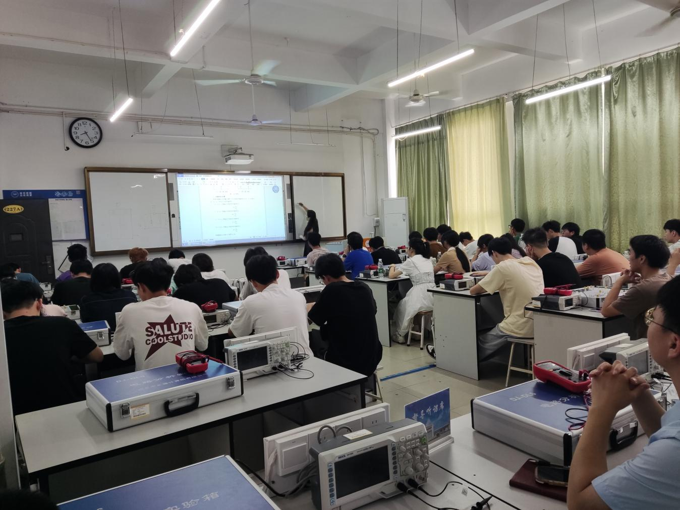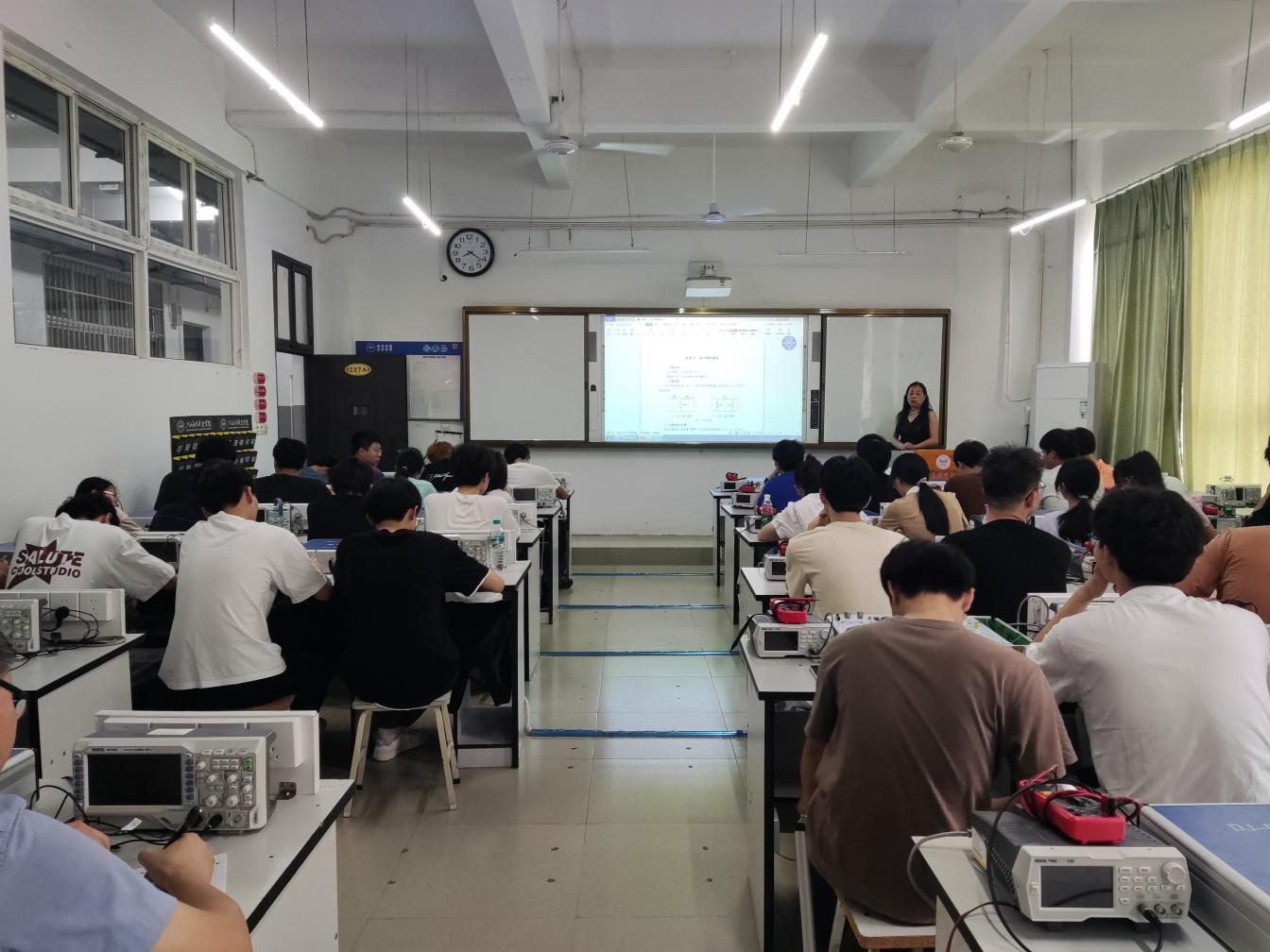 本次廖教授授课内容为《电路分析基础》课程中的实验部分--双端口网络测试,在教学过程中,廖芳教师的教学方法是以理论和实践相结合,将生活中的实例和电路分析基础相结合,以讲授法、讨论法和案例教学法相结合的方式进行授课,此次授课内容重难点突出,结合课后习题来增强师生的互动性,使得课堂气氛活跃,做到有问有答。