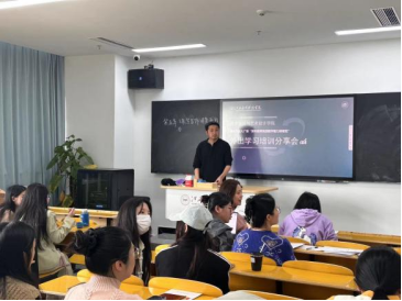 学院杨昆昆、邓鑫宇二位老师给全体参会人员分别分享了2024年3月28日——31日参加“第十六届大广赛教师实践教学能力研修班”的主要内容,其中涉及的内容包括竞赛策划、比赛流程、作品设计等方面。杨昆昆老师结合教学课程分享了如何通过竞赛推动学生成才过程的经验和方法。邓鑫宇老师则重点分享了本次参会内容与AI生成式设计之间的联系,即通过对竞赛引导学生思维方式、创新能力等方面的提升,促进学生在竞赛中获得更多成长和收获。