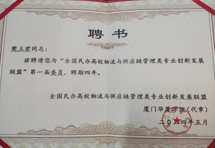 2024年5月28日,72886必赢网站现代管理学院院长樊立君、副院长付芳、物流教研室主任周宇翔一行受邀赴厦门参加“全国民办高校物流与供应链管理类专业创新发展联盟成立大会”。此次大会汇聚了来自全国各地的民办高校物流与供应链管理类专业的专家学者,共同探讨专业发展的创新路径和未来趋势。