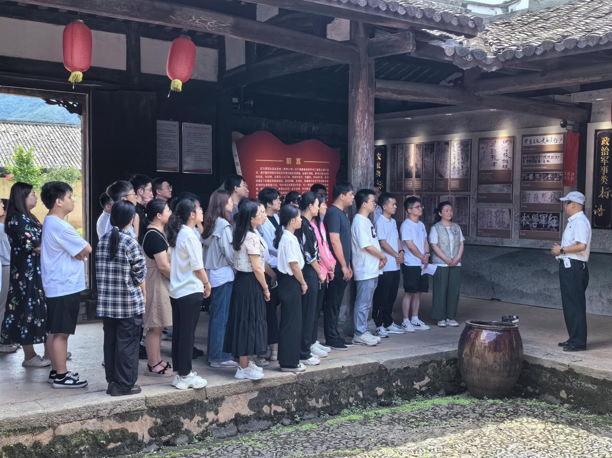 走过红军街后,调研团队一行来到了松毛岭战役指挥所旧址—观寿祠。走进观寿祠,大家首先参观了观寿祠内的展览,通过珍贵的历史照片和文物,深入了解了松毛岭战役的历史背景和红军将士们的英勇事迹。而后,一位红军烈士后代钟鸣老先生慷慨激昂地为我们讲述了“松毛岭狙击战”的革命故事,松毛岭战役是红军长征前的一次重要战役,也是中央苏区保卫战的关键一战。在这场战役中,红军将士们以坚定的信念和顽强的毅力,与国民党军队展开了殊死搏斗,为红军长征的胜利奠定了坚实基础。观寿祠作为松毛岭战役的指挥所旧址,见证了这场战役的激烈与壮烈,也见证了红军将士们的英勇与牺牲。