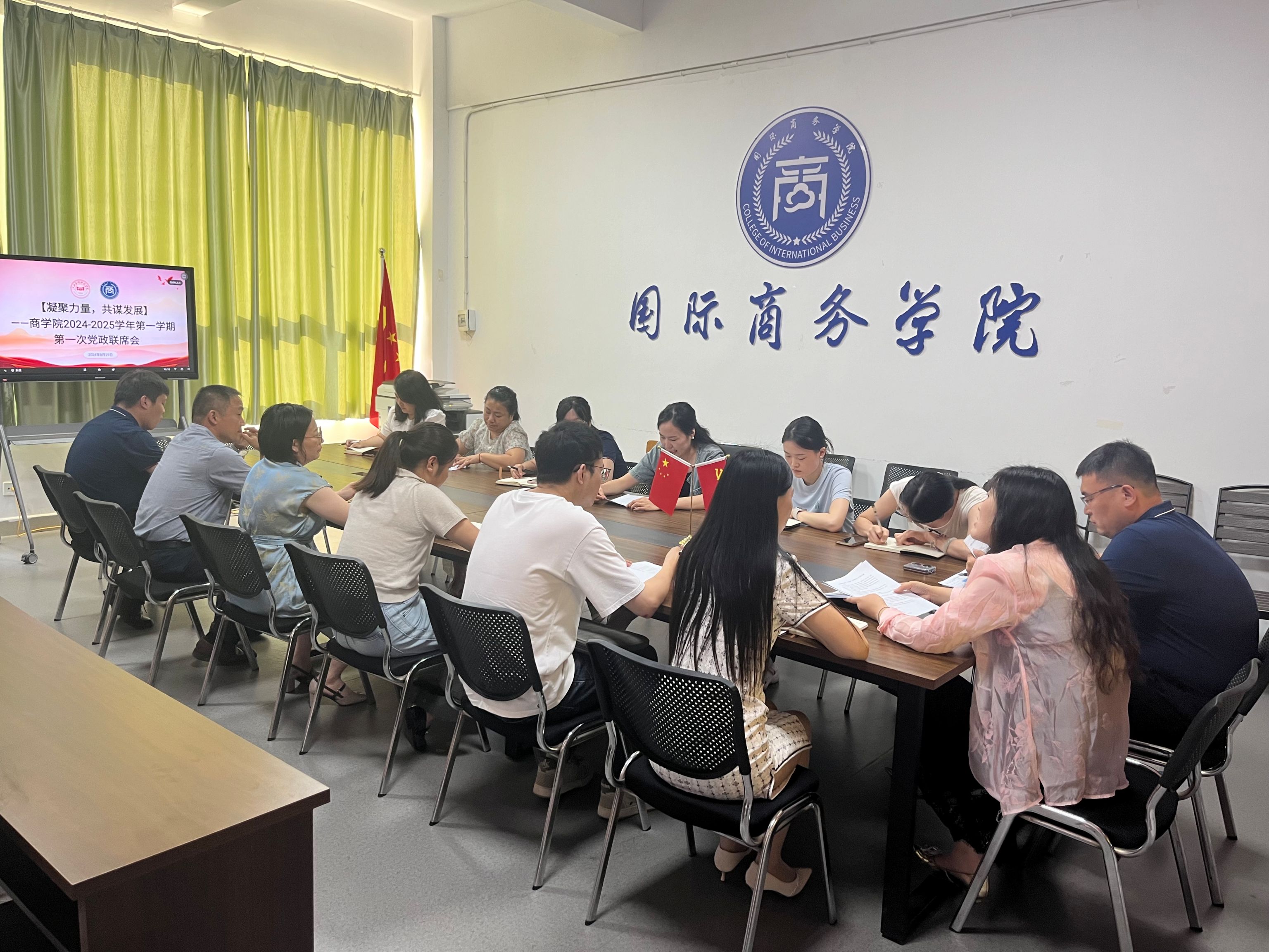 2024年8月29日,商学院于三达楼207党员活动室举行了2024-2025学年第一学期第一次党政联席会议。出席本次会议的包括商学院全体行政人员、各教研室主任及专业带头人。会议的主题为审议2024版人才培养方案。
