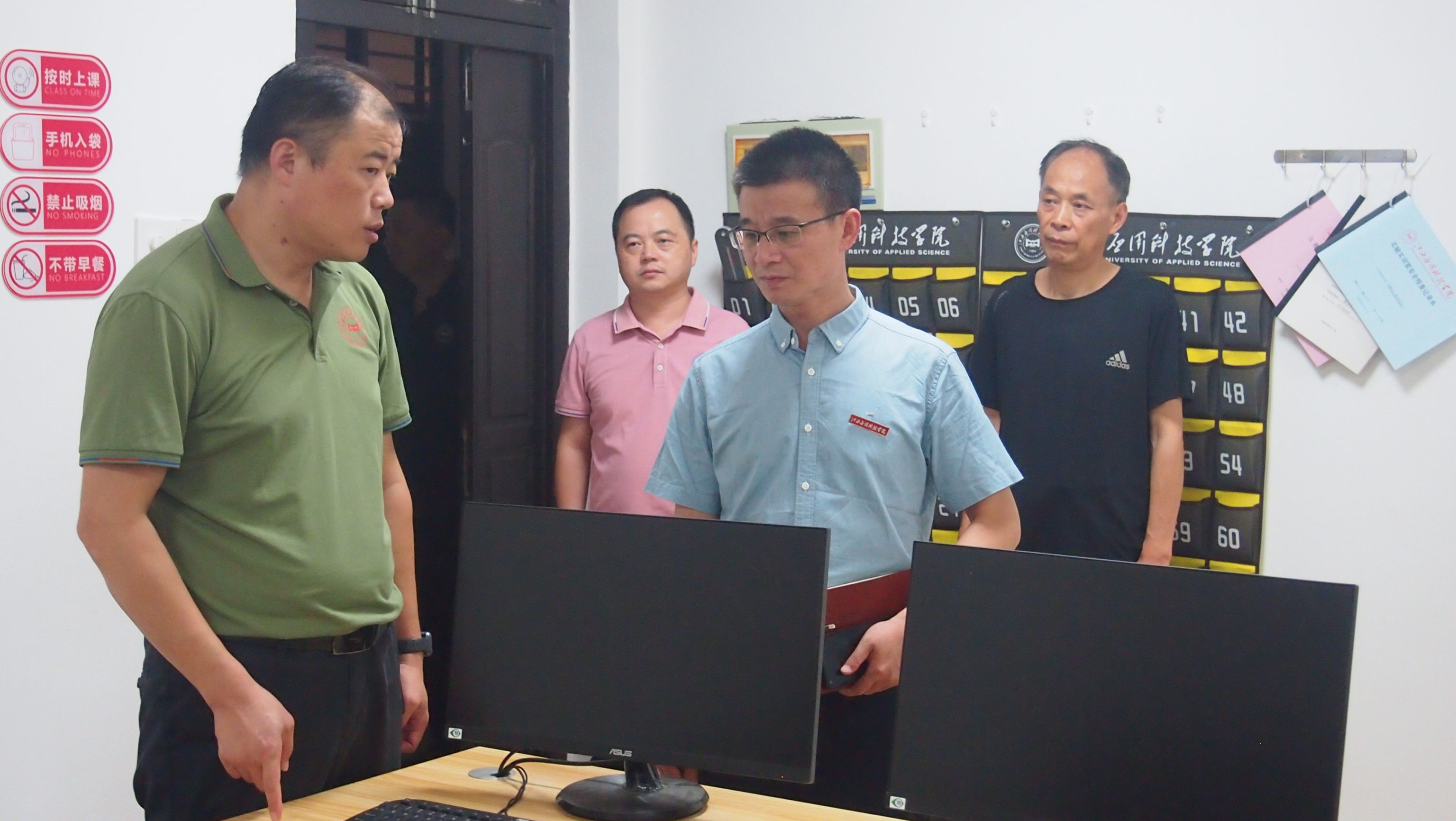 贺一松书记走访了学院各科室、教研室,调研了学院办公场所、实验实训室环境等情况,亲切慰问了学院教职工。