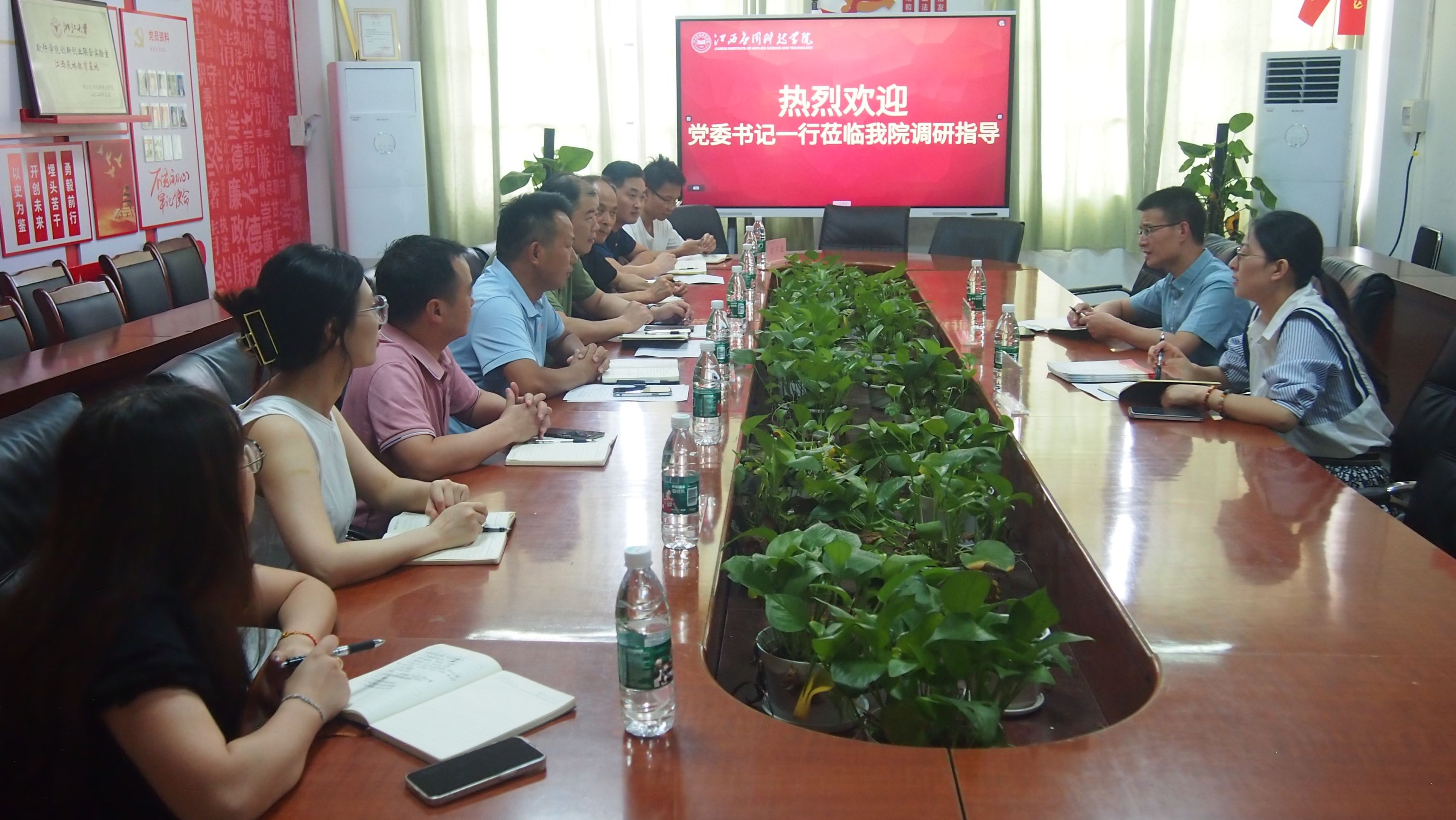 党总支书记卢胜勇汇报了学院党建基本情况,围绕学院党总支“一二三四五”综合服务引领提升工程,对学院党总支在困难帮扶、养德修为与养成教育工程、师生专业能力进步的成就进行了阐述。贺一松书记对学院党建工作表示了高度赞同,并就进一步加强党建工作品牌化建设、实效性发展进行了指导。贺一松书记以江西农业大学、上海交通大学的特色党建工程为例,针对学院实际,指出基层党建工作要落脚于组织建设,坚持立德树人的根本任务与工作目标,积极将党建工作与团学工作、教学科研、人才培养深度融合,在内涵发展、质量提升中发挥服务水平,深入推进高素质应用型人才培养工作。