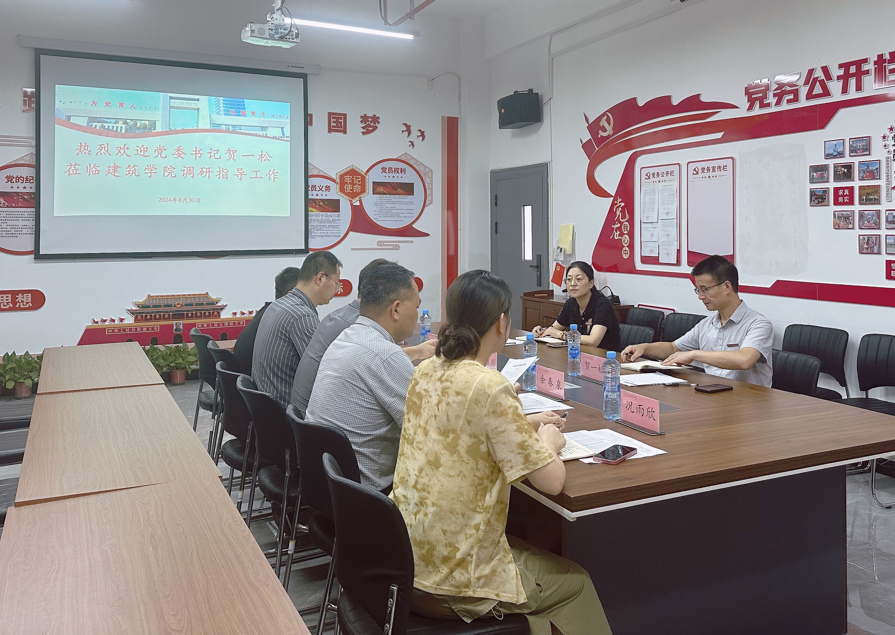 调研期间,贺书记一行先实地考察了建筑学院的教室环境及办公场所,随后在学院党员活动室召开调研座谈会。