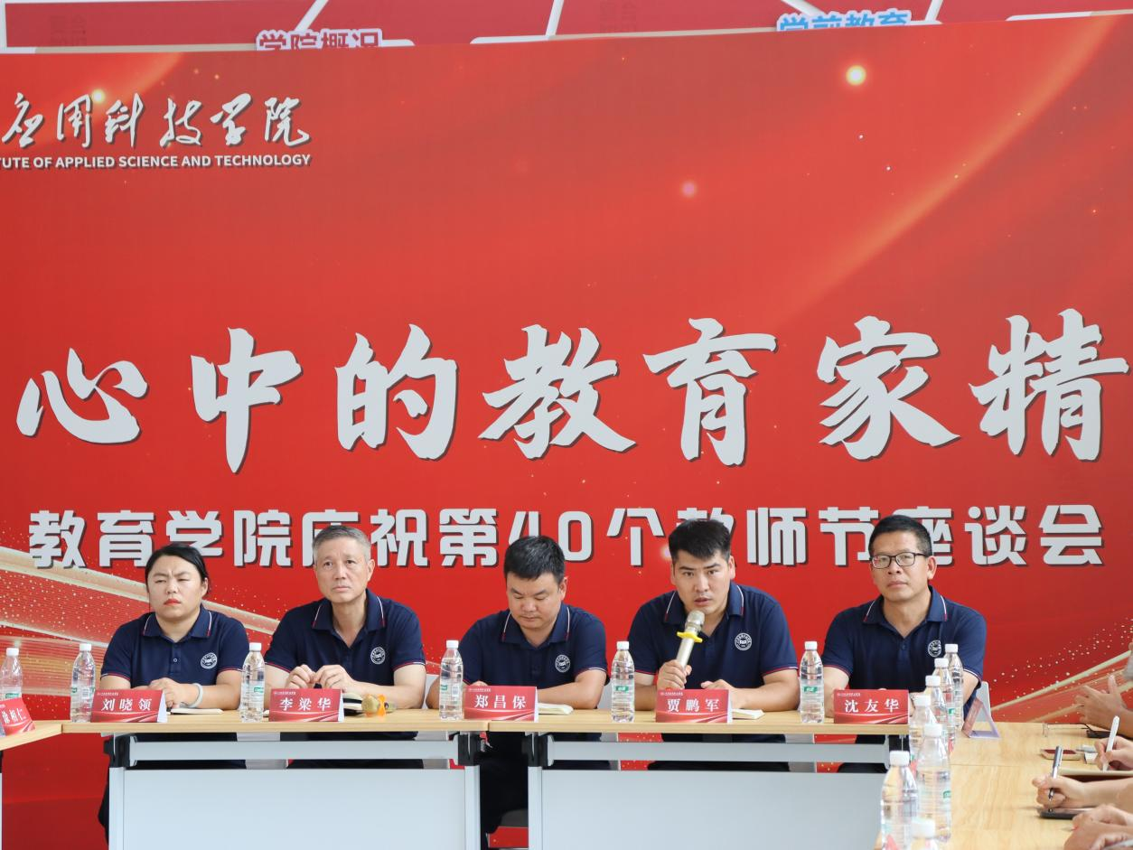 座谈会上,党总支副书记贾鹏军首先代表学院向全体教师致以崇高的敬意。他表示,我们的老师在高职这片沃土上,用智慧的光芒照亮学生的未来,用辛勤的汗水浇灌希望的田野;教育家精神的六个内涵是一个系统全面、逻辑严密的有机整体,旨在全面提升教师的职业素养和道德水平,推动教育高质量发展。