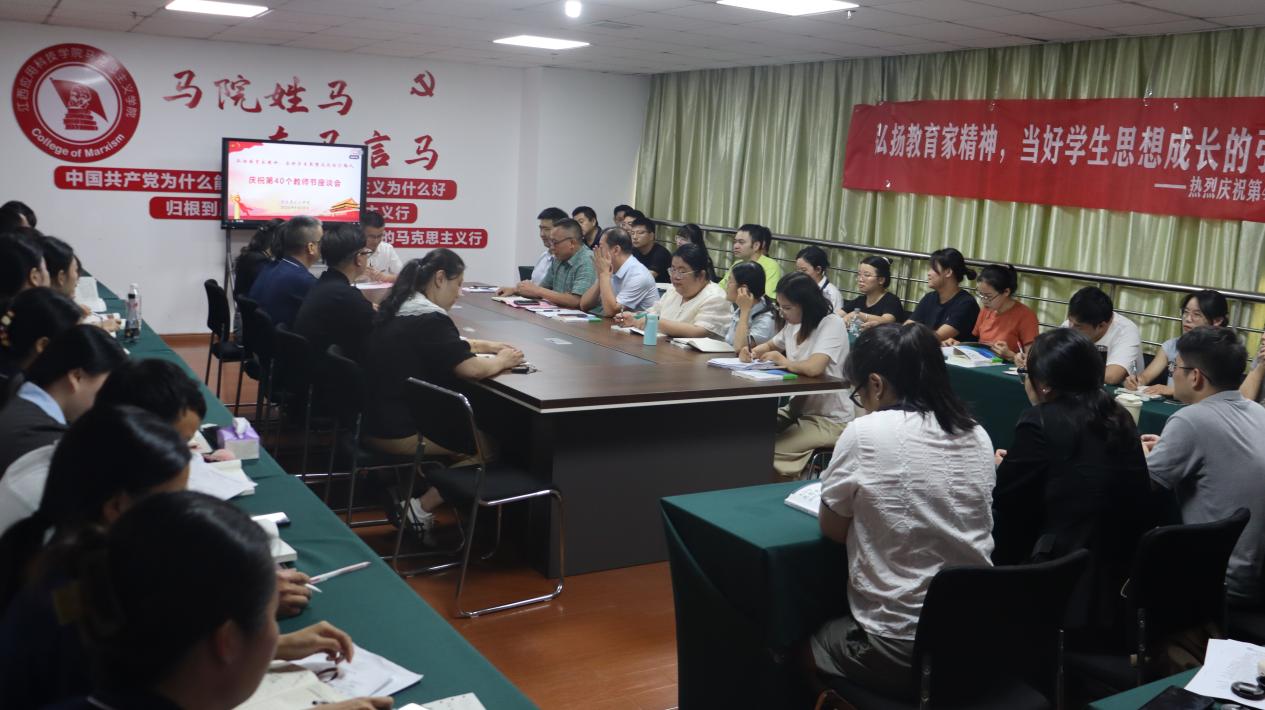 为庆祝第40个教师节,大力弘扬教育家精神,营造尊师重教、崇尚师德、传承师道的良好氛围。9月10日,马克思主义学院开展以“弘扬教育家精神,当好学生思想成长的引路人——热烈庆祝第40个教师节”学院座谈会。座谈会由马克思主义学院副院长丁栋轩主持,出席领导有校党委书记、政府督导专员贺一松、校党委副书记、纪委书记江星,马克思主义学院全体教师参加。