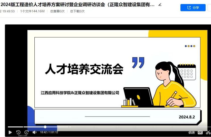 8月2日晚,教研室主任彭国平及骨干教师赖诚等,与正隆众智建设集团通过网络平台举行线上人才培养方案座谈会。赖诚老师介绍了工程造价专业的发展历程、特色及人才培养方案,展示了师资力量、课程设置及校企合作成果。企业方则分享了公司概况及行业趋势,强调新能源造价、绿色建筑等新兴领域的重要性,并建议培养多领域综合人才。彭国平主任提出将“人工智能”融入建筑教学的创新思路,获企业认可。