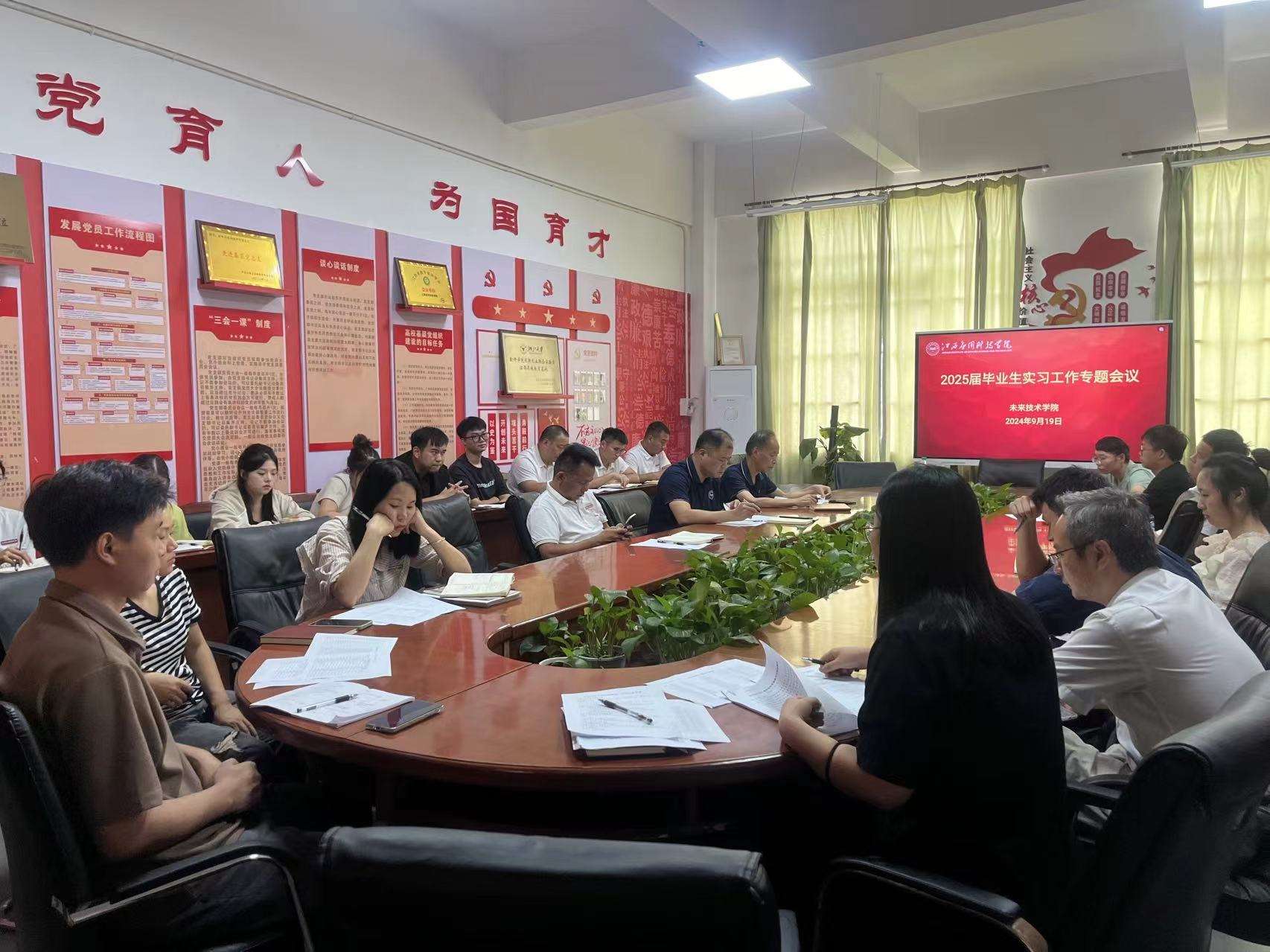 为进一步落实学校关于2025届毕业生毕业实习工作的相关指示精神,结合学院近期工作实际与外部环境,坚持“早谋划、早准备、早落实”的原则,为确保有序开展2025届毕业生毕业实习相关工作,为实现高质量就业做准备,2024年9月19日下午,未来技术学院于三达楼210召开2025届毕业生毕业实习工作专题会议。学院院长卞秀运、学院党总支书记卢胜勇、学院副院长余雷、彭军,教务科全体人员、毕业实习指导老师及全体毕业班辅导员参加此次会议。