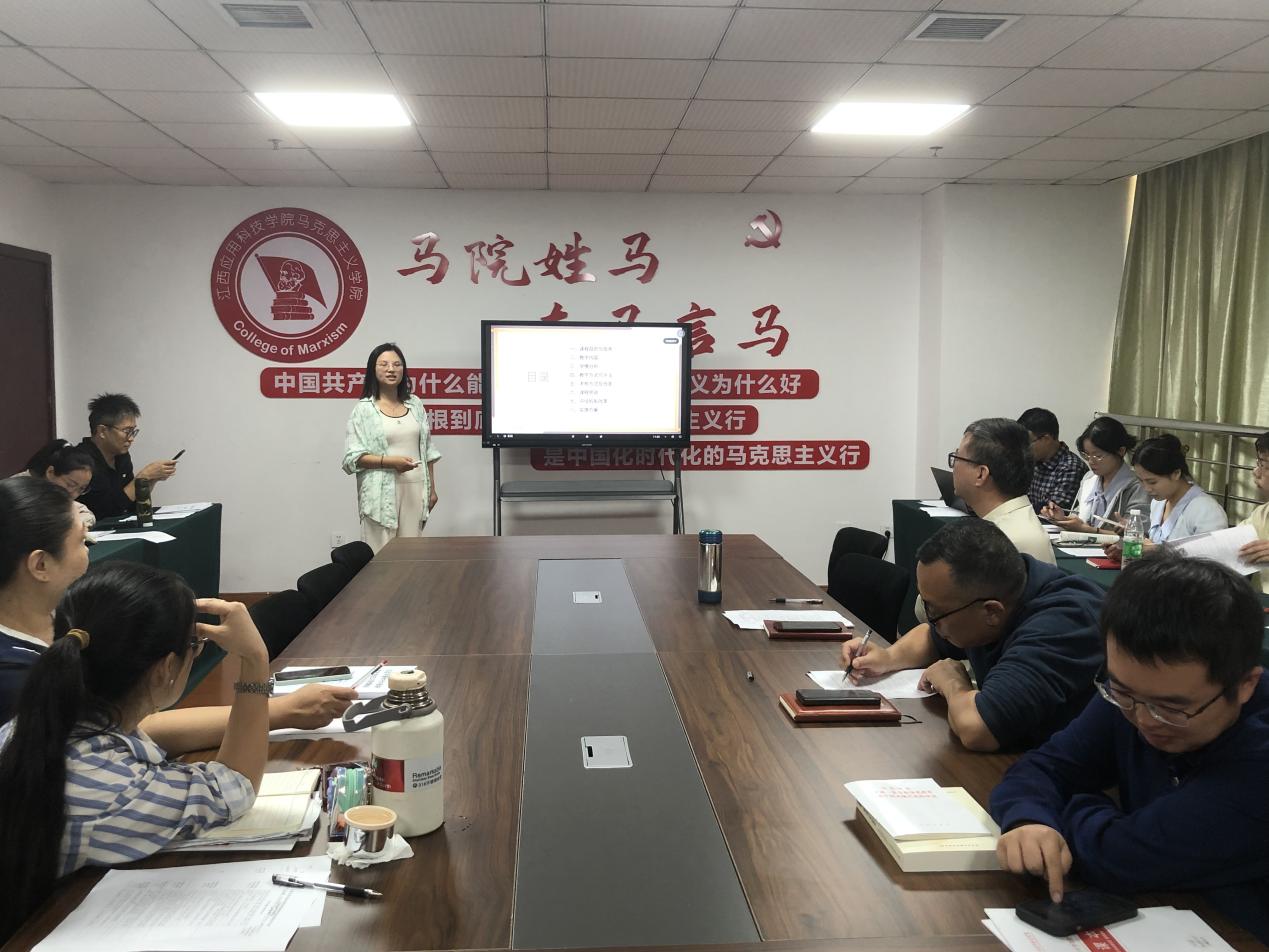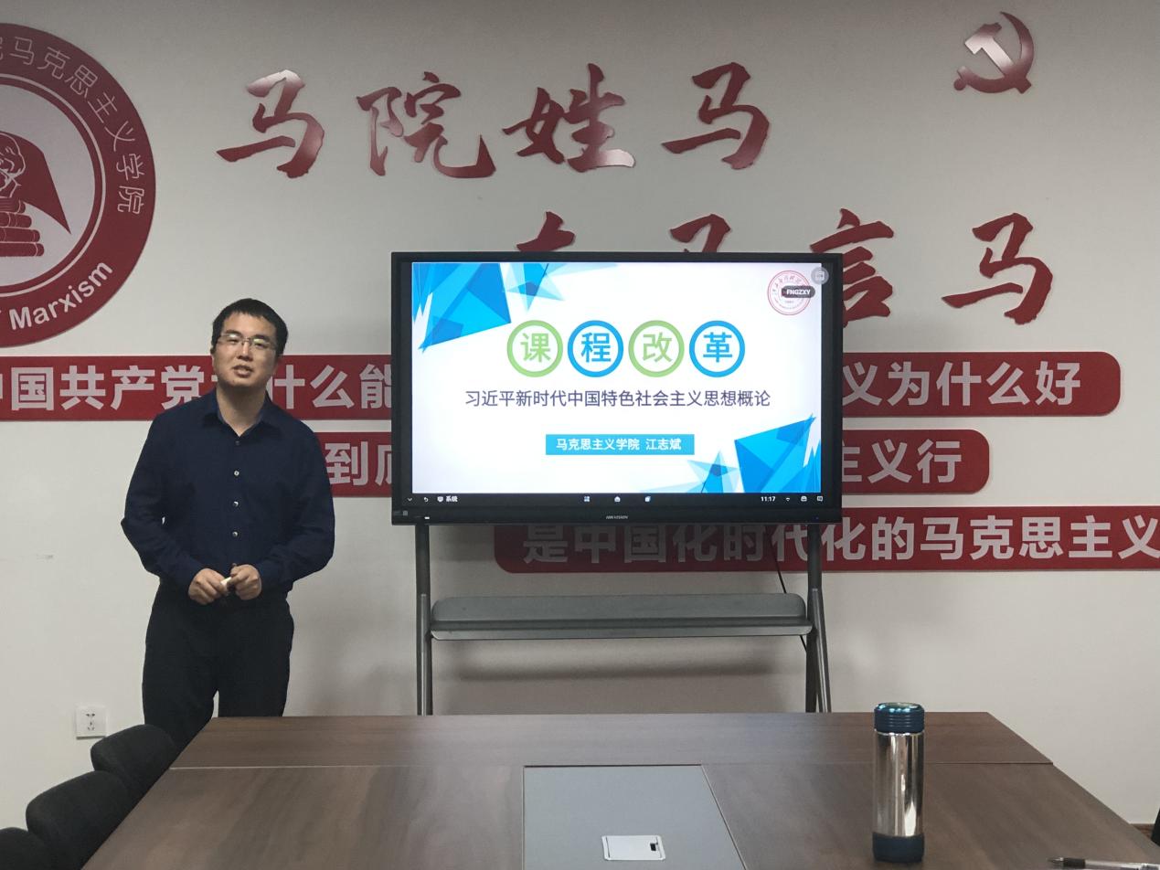 课程是人才培养的核心要素,课堂教学质量直接决定人才培养质量。为推进思政课教育教学改革,进一步优化教学体系,提高教师课改的课堂教学水平和教学质量。2024年10月11日上午11:10,马克思主义学院在综合楼807会议室举行了第四批大规模课改说课会。说课会由副院长丁栋轩主持,各教研室主任及全体教师参加。