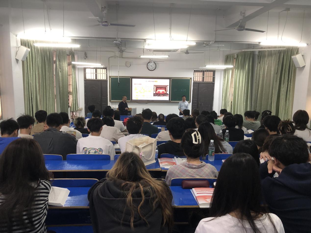 为深入学习贯彻习近平新时代中国特色社会主义思想,创新教学模式,丰富教学内容,提升教学实效。持续推进思政课教育教学改革,积极探索和构建“双师同堂”的教学形式,提升教学效果,努力做到把思政课讲深、讲透、讲活,充分发挥思政课立德树人关键课程作用,增强学生学习思政课的积极性、主动性、创造性。2024年10月14日,我院邀请经济管理学院常务副院长揭志锋开展以《习近平新时代中国特色社会主义思想概论》课程为依托的“双师同堂”示范教学,给22本动画1班、动画2班的同学们带来了一场别开生面的思想盛宴,为同学们提供了更加丰富的学习体验,有效的提升了学生的抬头率、点头率。