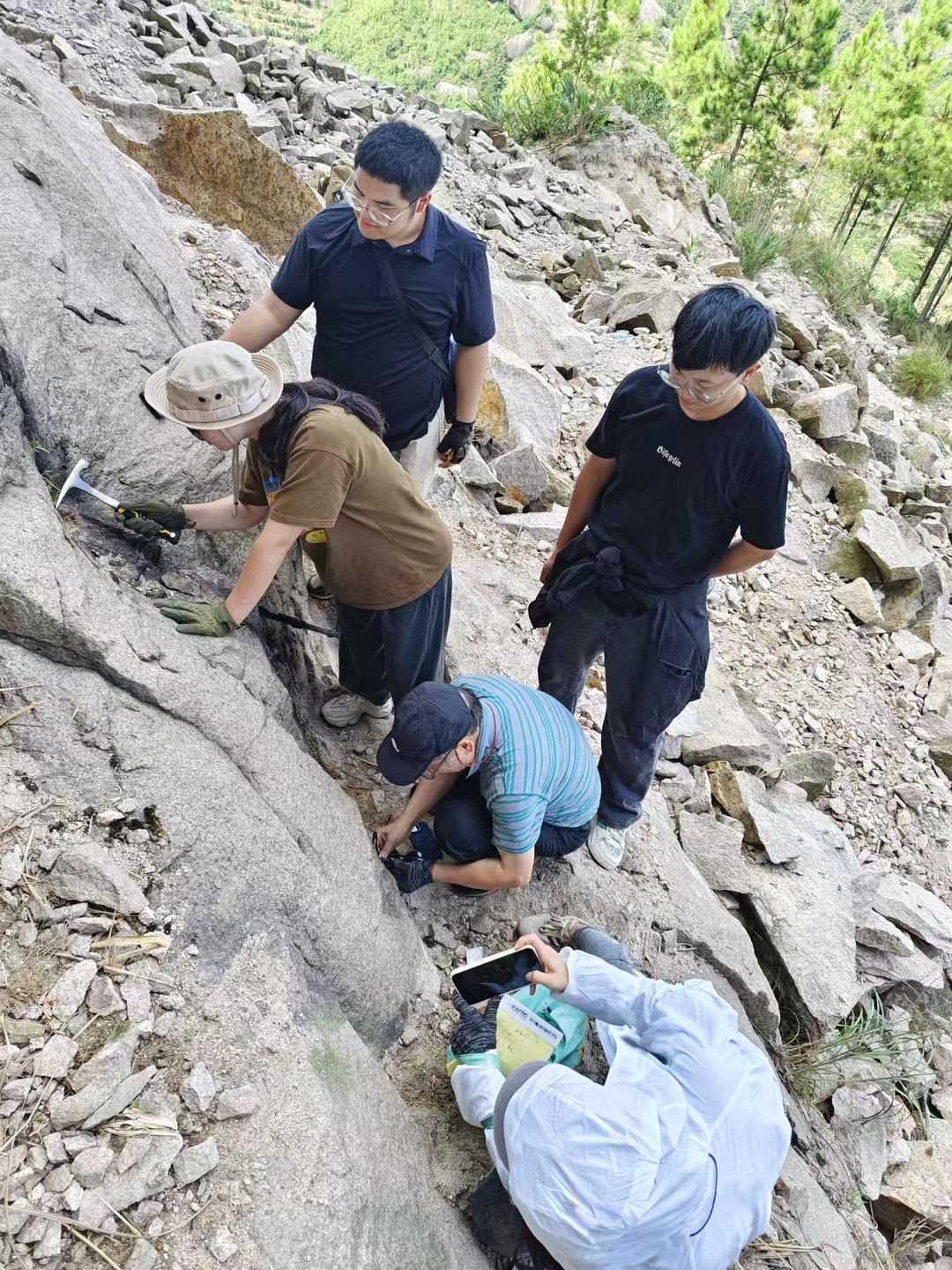 在调研过程中,学院还特别注重对学生们实践操作能力的培养。大家学会了如何正确使用地质工具进行岩石采样,并在采样过程中相互协作,共同完成了任务。这不仅锻炼了同学们的团队协作能力,还显著提升了他们的地质技能。