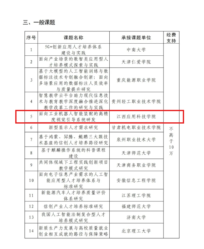 近日,工业与信息化部教育与考试中心发布了《关于发布2024年度研究课题遴选结果的通知》。我院卞秀运负责的《面向工业机器人智能装配的高精度视觉引导系统研发》课题入选。