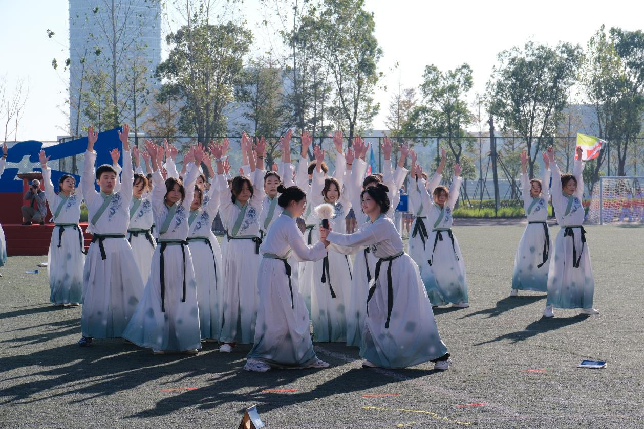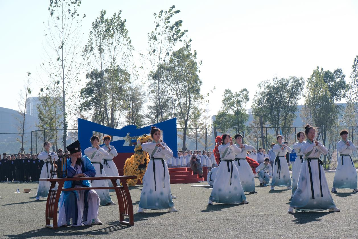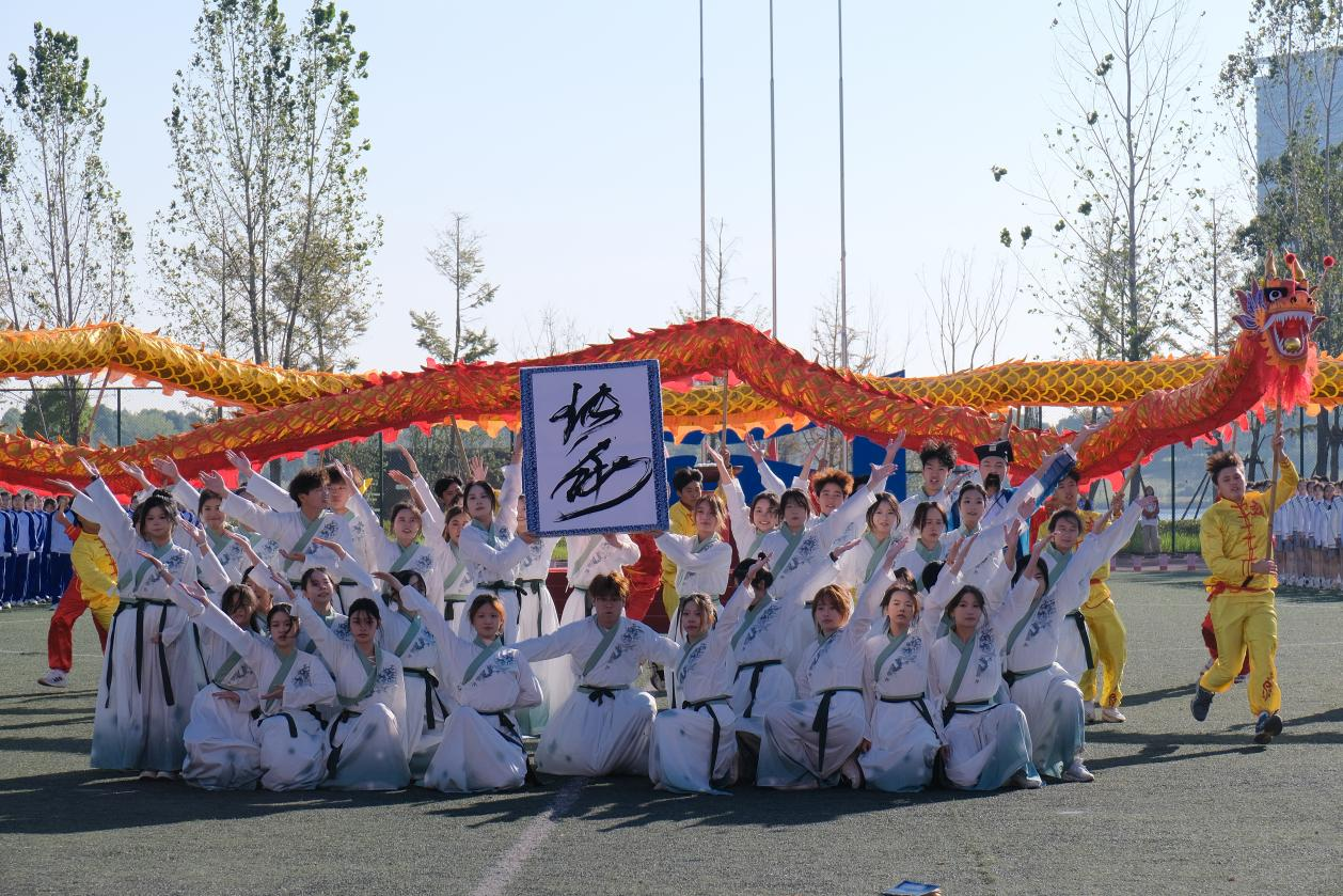 轻舞飞扬,如诗如画。龙腾狮跃,彰显青春活力;太极表演体现平和与坚韧,两者尽显力与韵的交响。“传承”二字,以笔为媒,在笔墨纸砚间传递着红烛精神。教育学院学生的精彩演绎,展现专业特色与对文化传承的深刻理解,寓意着文化之光代代相传,生生不息。