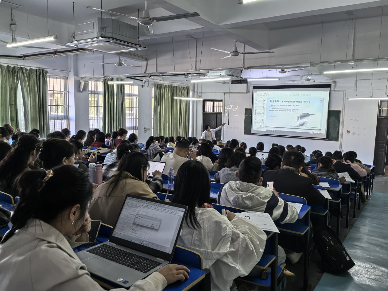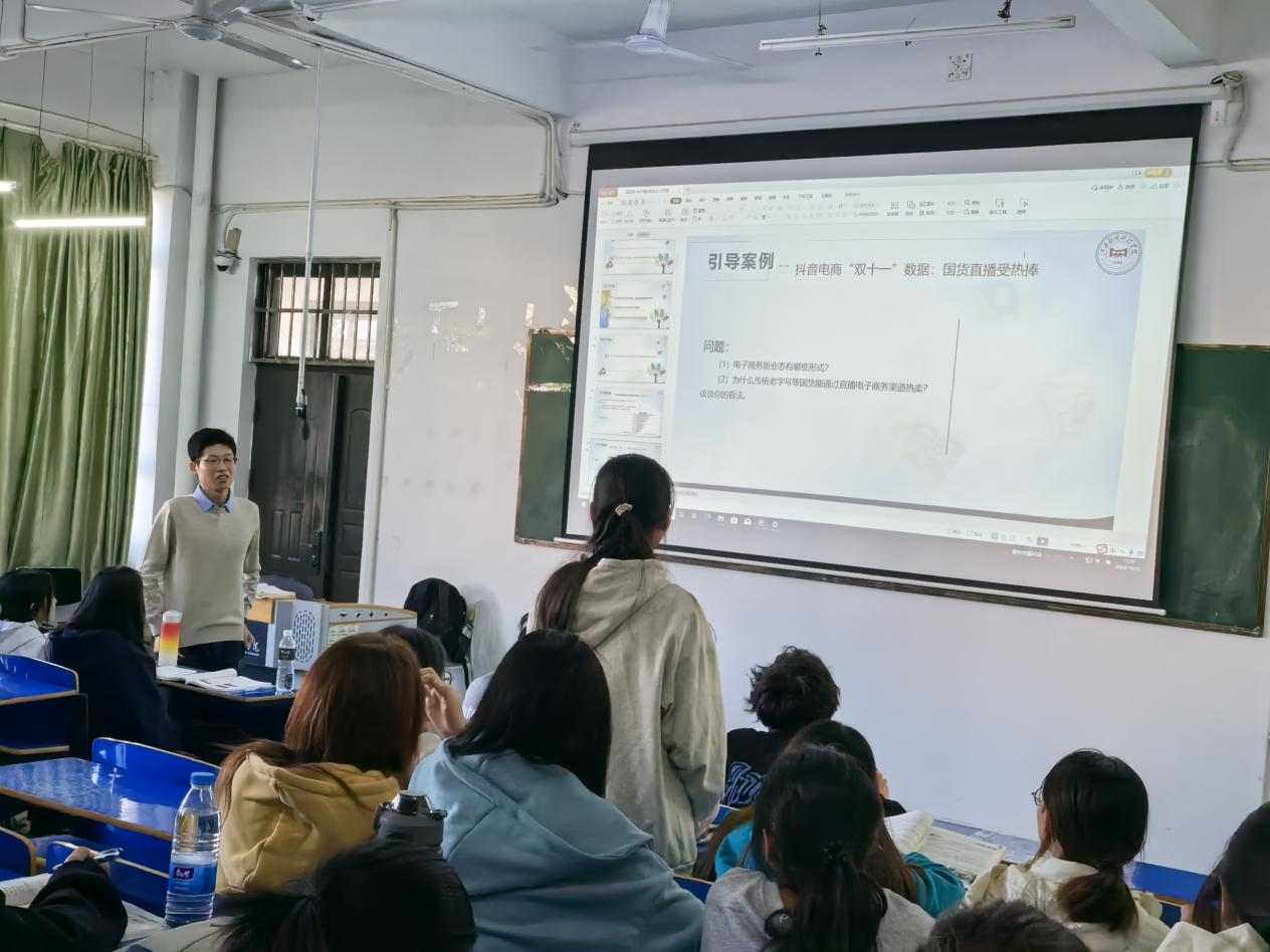 2024年10月23日下午,经济管理学院于三达楼阶梯六教室里开展第104期公开示范课教学活动。本次公开课由张立昂老师主讲,主题是“电子商务新业态”。22本市场营销1班的同学积极参与,学院多个教研室近一百位教师前来旁听。