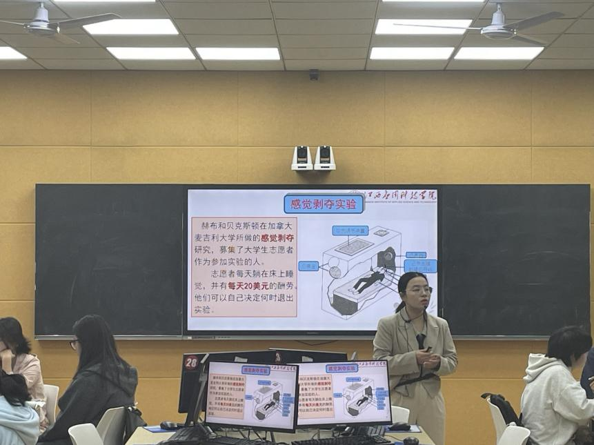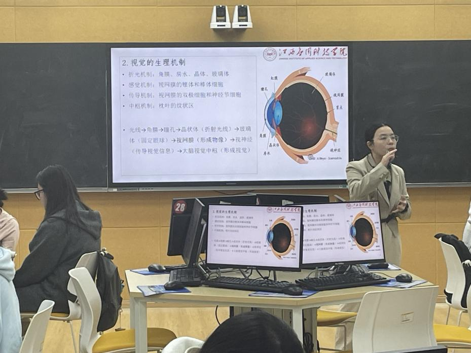 在这堂充满探索与发现的课程中,刘书吟老师以“感觉剥夺实验”作为引人入胜的开场,让学生们直观感受到感觉在日常生活中的不可或缺性,瞬间点燃了他们对感觉奥秘的好奇与热情。随后,刘老师紧扣生活实例,深入浅出地剖析了视觉的适宜刺激、生理机制、感受性以及色觉理论等核心知识点,带领学生们一起解密生活中那些看似平常却蕴含深邃科学原理的视觉现象。