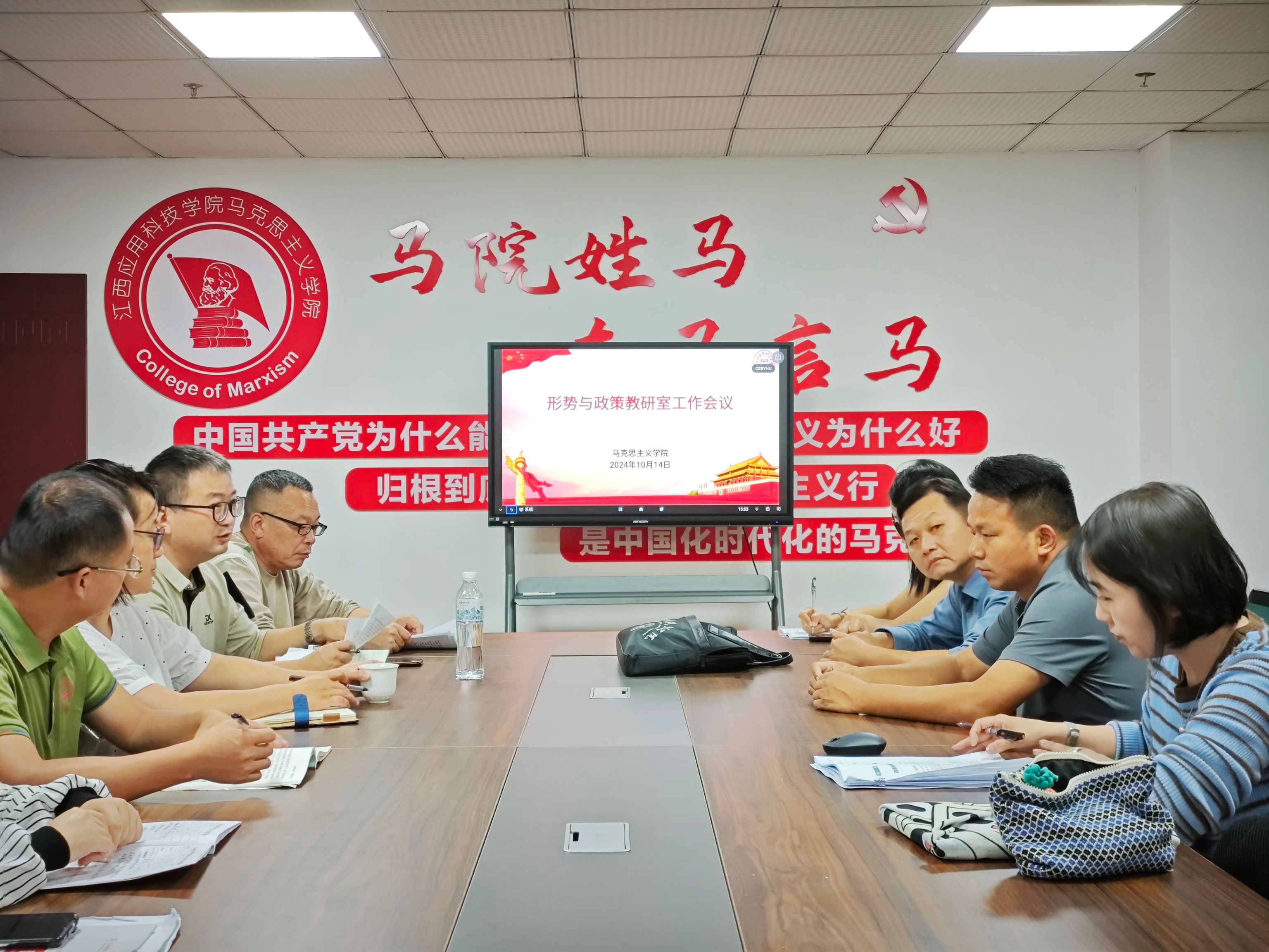 10月14日下午,马克思主义学院形势与政策教研室在综合楼807召开本学期第四次工作会议暨集体备课会。会议由教研室主任胡杏根主持,马克思主义学院副院长丁栋轩、《形势与政策》课程组教师参加了本次会议。