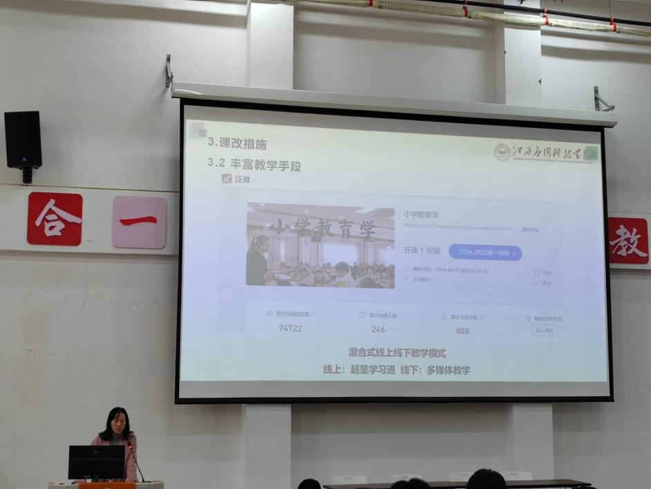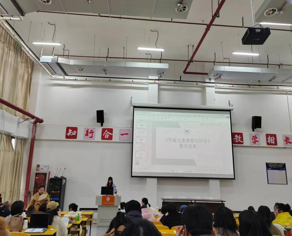 生的综合素质,培养具有创新精神和实践能力的人才。小学教育教研室翟会茹老师的“现代教育技术与数字素养的课改汇报”指出,现代教育技术课程重视实践,通过实践操作提高学生的现代教育技术素质,培养其适应信息时代教学需求的能力;杨标老师就“小学教育学”的课改进行了总结,基于OBE教育理念,以“学”为中心,理论联系实际,采取优化教学内容、丰富教学手段、创新教学方法等措施,为课堂注入新的活力。学前教育教研室陈芳芳、张仁、司盼盼老师分别就“学前儿童社会教育”“学前儿童健康教育”和“学前教育学”课程的改革实践进行了汇报,结合课程特点,展示了多样化的教学改革措施。