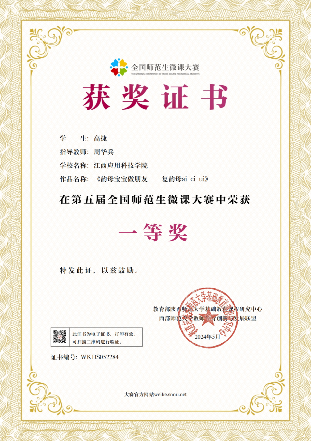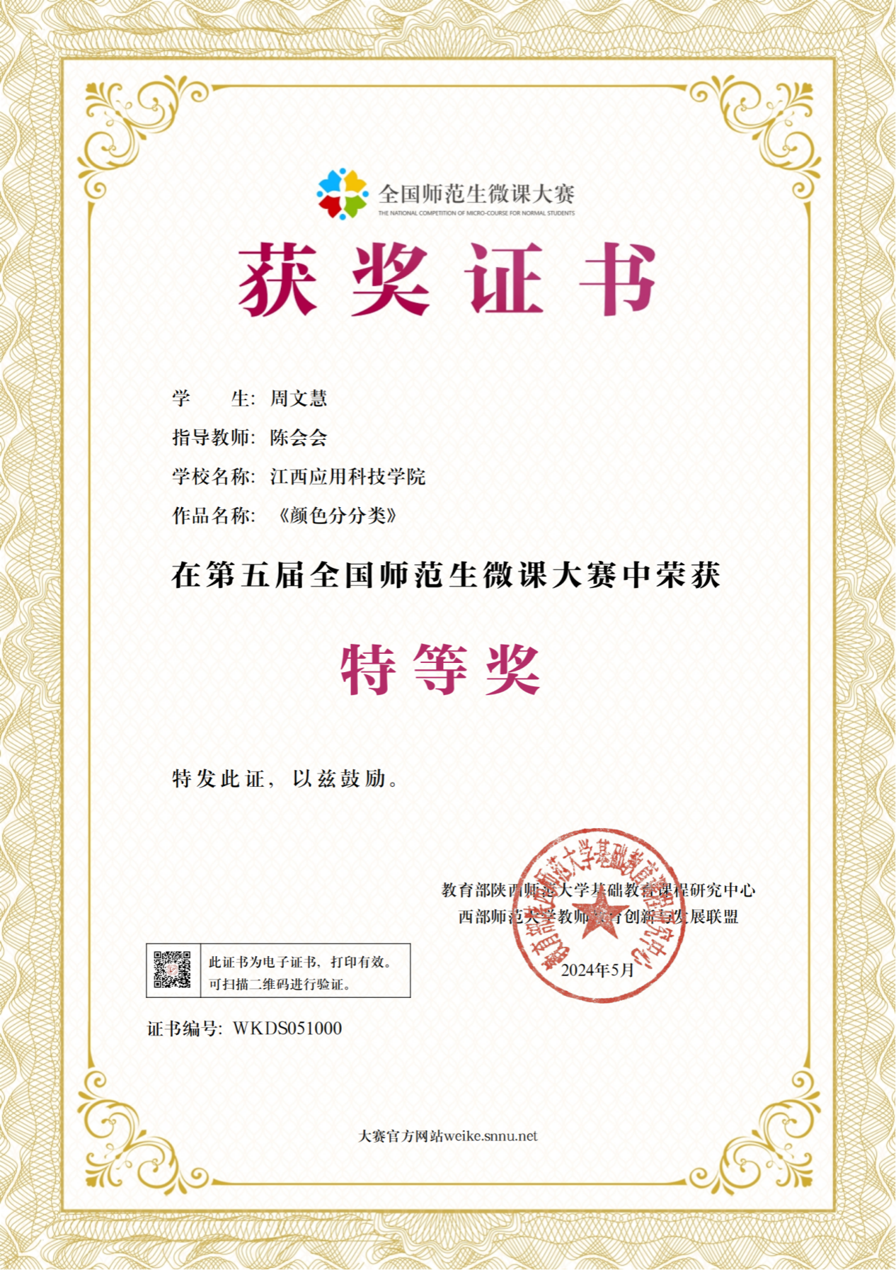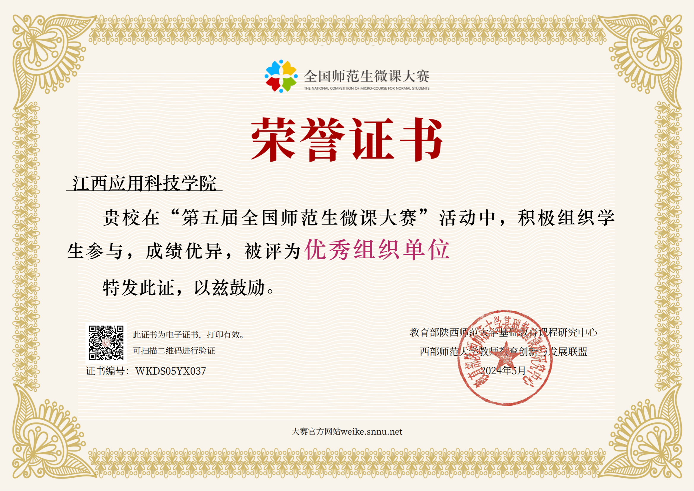 为进一步提高师范生信息化教学能力,不断提升其信息素养,加快创新型卓越教师培养,助力教育信息化、教育资源数字化建设,促进优质教育资源共建共享,逐步创建中小学优质精品课程资源,由教育部陕西师范大学基础教育课程研究中心及西部师范大学教师教育创新与发展联盟主办的第五届全国师范生微课大赛落下帷幕,学院学生获特等奖1项、一等奖5项、二等奖5项、优秀奖9项,教师陈会会荣获优秀指导教师奖、学校荣获优秀组织单位奖。