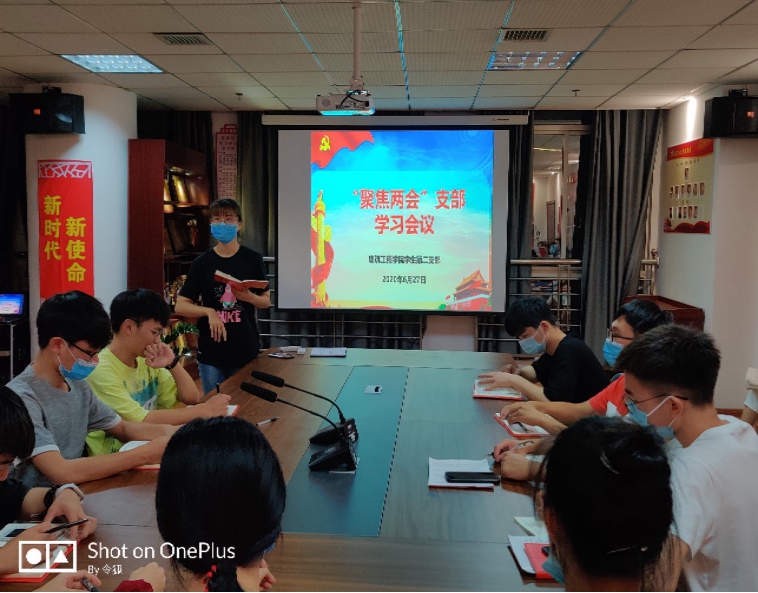 今年“两会”是在我国打赢三大攻坚战,决胜全面建成小康社会的关键之年,全国疫情防控阻击战取得重大战略成果、统筹推进疫情防控和经济发展工作取得积极成效的背景下召开的极其重要的会议。为深入学习习近平新时代中国特色社会主义思想,认真贯彻全国“两会精神”,建筑工程学院学生第二党支部于2020年6月27日晚上7点在综合大楼302党员活动室组织召开了主题为“聚焦两会”的支部学习会议。会议由16期预备党员李艾玲主持,二支部在校的全体党员及入党积极分子参加了本次学习会议。