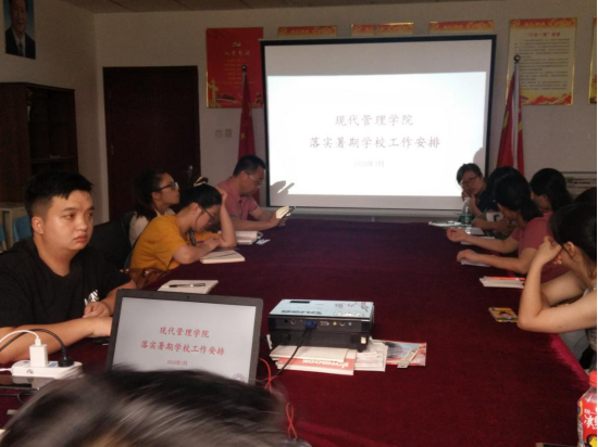 为及时学习贯彻落实黄玉林董事长在2020年学校暑期中层干部培训会上的讲话精神,2020年7月19日下午1点,现代管理学院在综合楼908分院党员活动室就此召开了学习讨论会议,并且在会议的同时落实暑期学校安排,分院全体教职工参加了此次会议。会议由现代管理学院党总支书记刘国平主持。