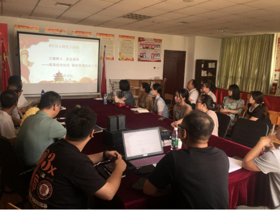 为深入学习贯彻习近平新时代中国特色社会主义思想和党的十九大精神,进一步提高政治站位,增强“四个意识”、坚定“四个自信”,把牢政治方向、站稳政治立场、坚持政治原则、坚定政治道路,坚持从讲政治的高度把握和定位当前学校和分院中心工作,营造思想统一、团结向上的工作氛围,2020年8月25日上午,现代管理学院党总支号召分院全体教职工在综合楼908党员活动室开展8月份主题党日活动——立德树人、身先垂范,提高政治站位,做好思想政治工作。会议由分院党总支书记刘国平同志主持。