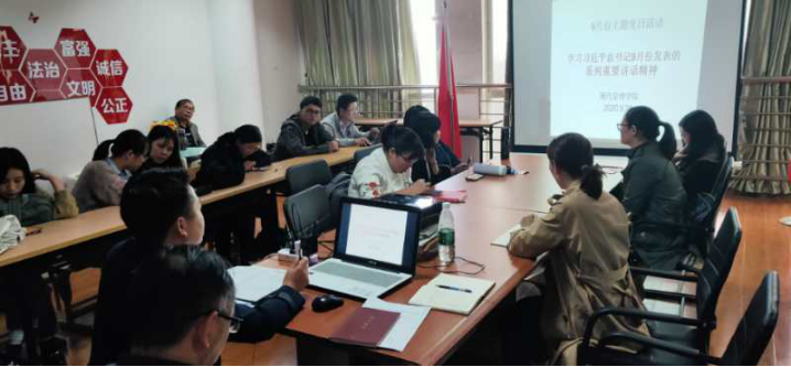 会末,全体教师在刘书记带领下进一步学习了总书记在深入湖南调研过程中的讲话精神,刘书记表明习总书记在湖南调研时给予青年学子不负时代重托、不负青春韶华的嘱咐和寄托为我们教育工作者指引了方向、明晰了责任。全体教师要坚守为党育才、为国育人的初心使命。