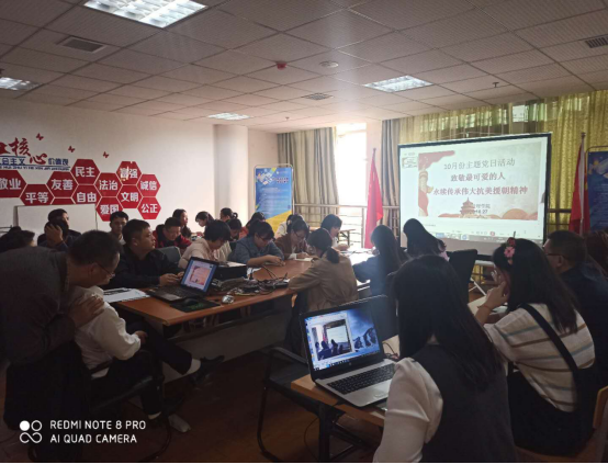 首先,刘书记带领大家集体观看了抗美援朝纪录片《从胜利走向胜利》——为了和平。影片展示了1950年10月,在朝鲜人民处于极端困难、中国安全受到严重威胁的情况下,为了保卫和平,抗击侵略,中国人民志愿军跨过鸭绿江开始了这场伟大的抗美援朝战争。这场战争打出了国威军威,不仅奏响了一曲曲可歌可泣的凯歌,而且锻造出伟大的抗美援朝精神,真正让中国人民站立起来。
