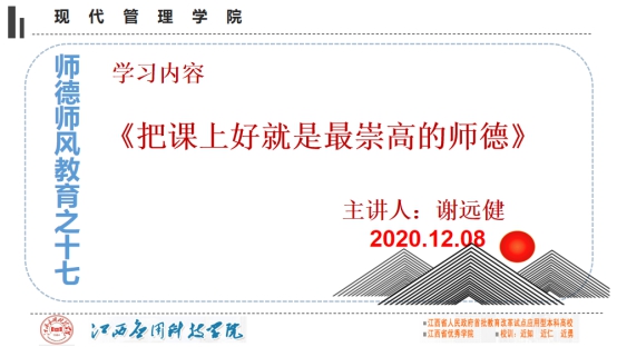 现代管理学院师德师风系列主题教育学习活动之十七---把课上好就是最崇高的师德
