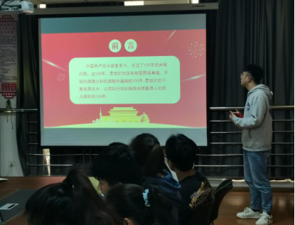 随后主持人顾程浩同志带领大家回顾了中国共产党在中国革命、社会主义建设、改革开放等各个历史时期的典型事例。在了解党史的同时,支部成员也深刻体会到了中国共产党的伟大,也更加懂得了今天美好生活的来之不易。在听完顾程浩同志的讲解之后,参会人员纷纷表示在今后的学习时光里应该更加主动地去学习中国共产党建立的百年历史,树立起对党和人民的强大自信心,刻苦钻研专业知识,并将其灵活运用于祖国繁荣、富强的生动实践中。