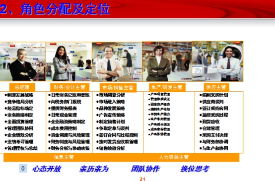 温玲英老师首先对《ERP沙盘模拟经营》这门实训课程进行了简介,ERP沙盘是模拟一个企业的整体运作,包括战略规划、资金筹集、市场开拓、产品研发、生产组织、物资采购、设备投资及改造、财务核算及管理等等,把企业运营所处的内外部环境抽象为一系列的规则,由受训学生组成若干组(8组为例)相互竞争的模拟企业,通过6个会计年度的经营运作,使受训学生有身临其境的感觉,从而达到培养学生综合素质及创新能力的目的。进而介绍了ERP的结构和模拟角色的分配和定位,然后结合ERP沙盘的经营规则,详细讲解了企业经营的流程以及企业沙盘模拟的经营策略,帮助学生们更好地理解掌握ERP沙盘模拟经营的相关流程和经营策略等知识。